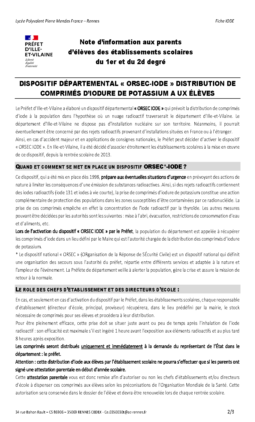 Il s'agit de la notice de présentation du plan de distribution d'iodure de potassium aux élèves. Il n'y a pas de champs de formulaire.