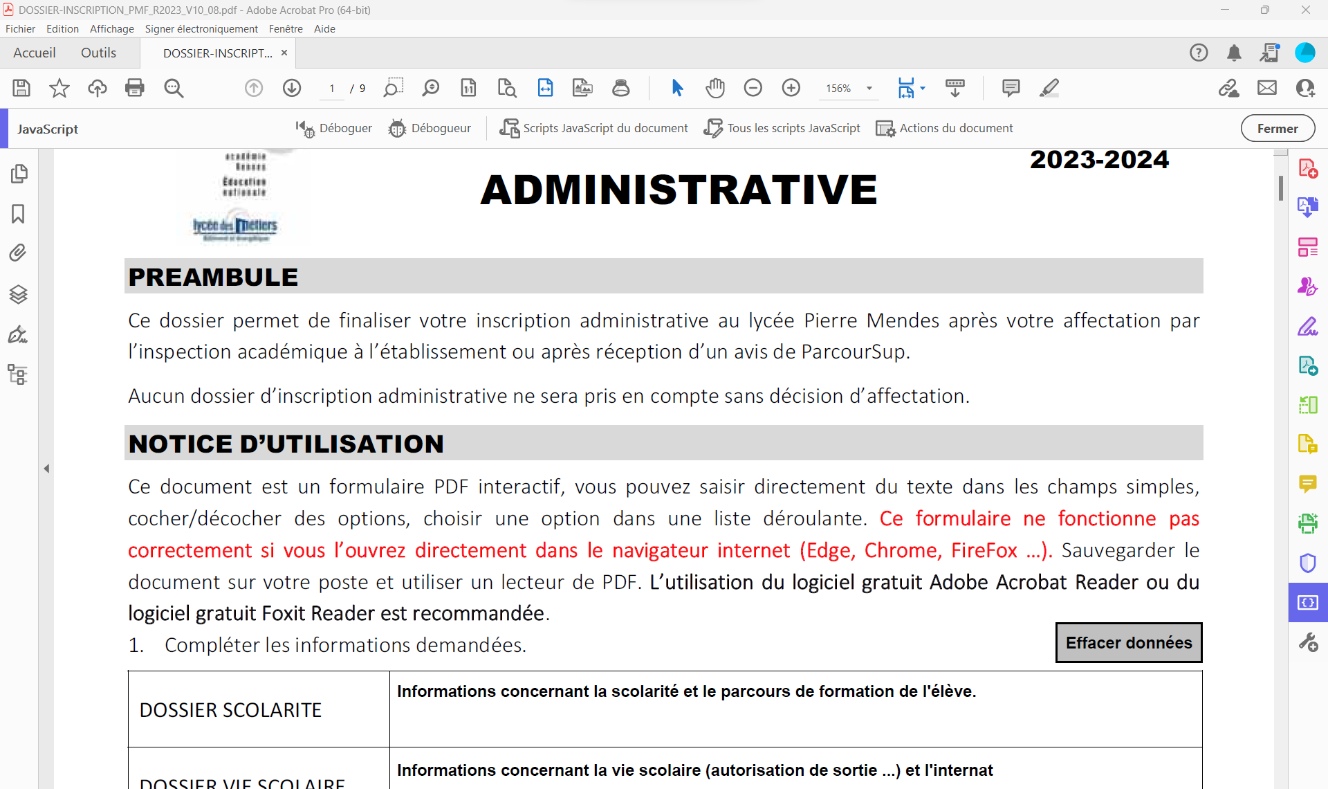 En activant l'outil JavaScript, la barre d'outil s'affiche et permet d'accéder aux Scripts JavaScript du document.