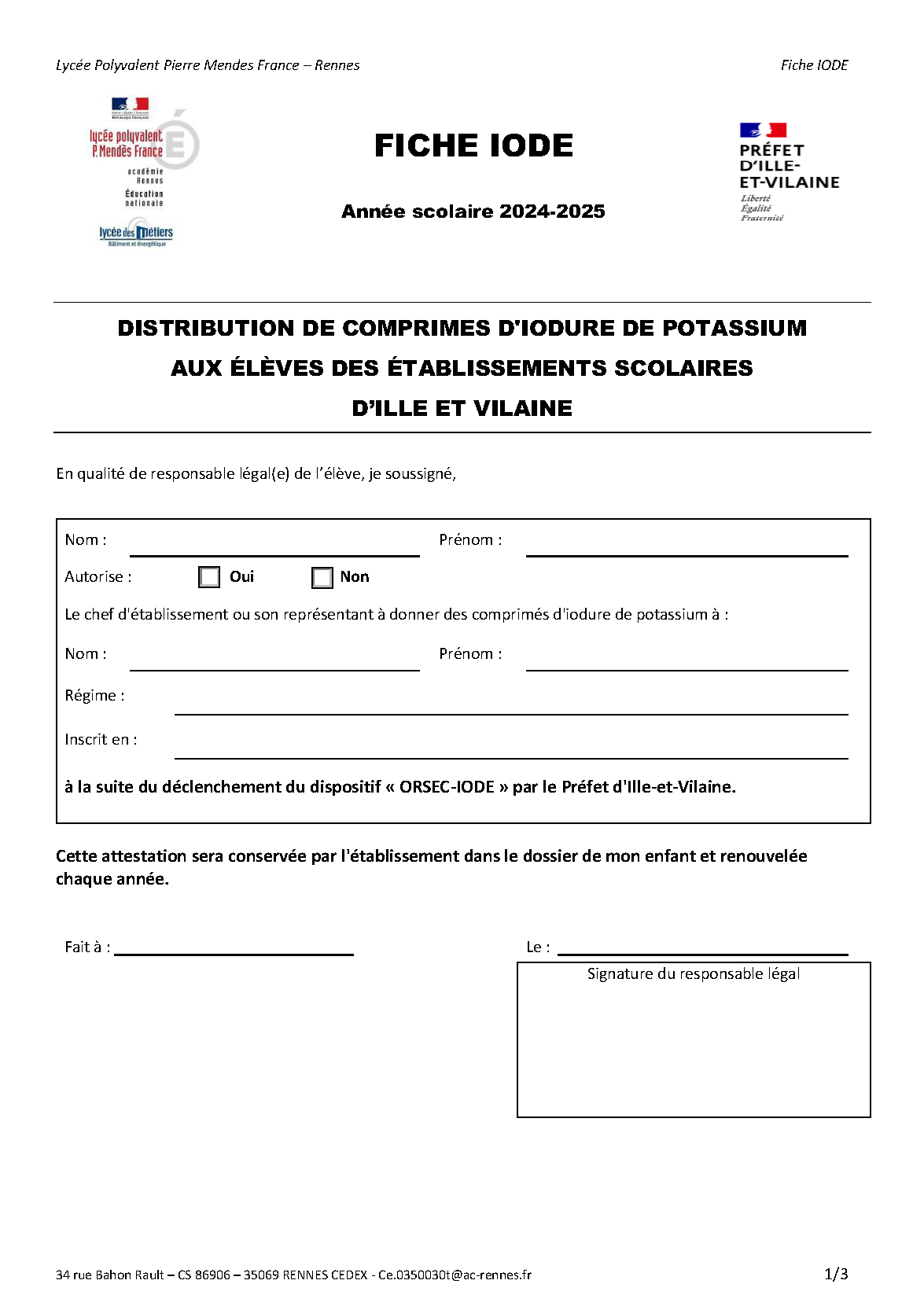 Ce formulaire PDF a été créé pour permettre l'inscription administrative des élèves, étudiants et stagiaires de la formation continue au lycée Pierre Mendes France.